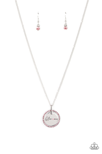 Infused with a silver ring of glassy pink rhinestones, a glistening silver disc is dotted with dainty pink rhinestone and stamped in the word, "Glamma," as it swings below the collar for a glamorously sentimental look. Features an adjustable clasp closure.