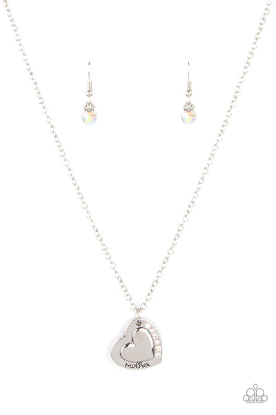Stamped in the word, "Mother," an embossed heart pendant is encrusted in a row of white and iridescent rhinestones, creating a sparkly sentimental centerpiece below the collar. Features an adjustable clasp closure.