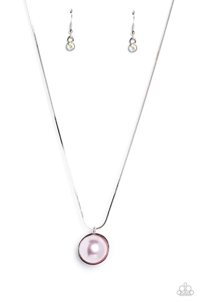Cascading from a shiny silver snake chain, a sparkly iridescent rhinestone-encrusted ornament and a classic baby pink pearl meet to create a half-and-half refined pendant. Features an adjustable clasp closure. Due to its prismatic palette, color may vary.