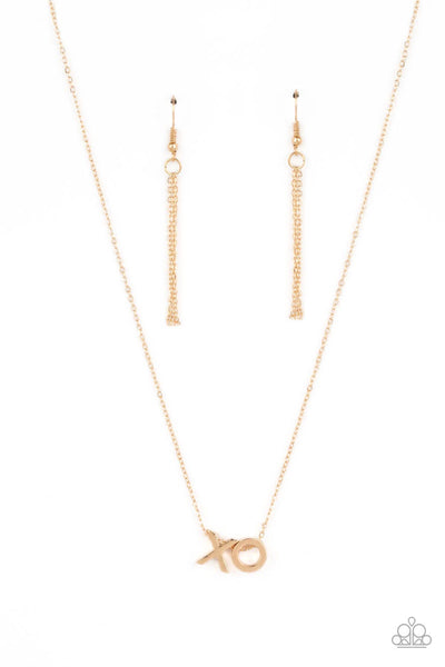 A gold letter "X" and a letter "O" in the same metallic sheen, slide along a classic gold chain, creating a dainty, fun-loving design. Features an adjustable clasp closure.