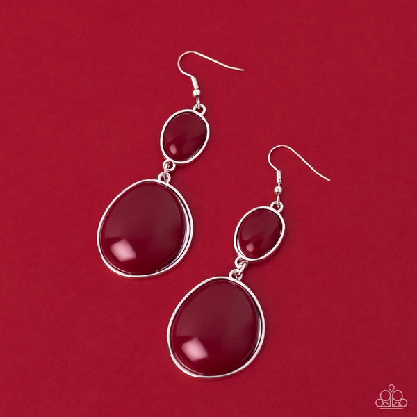 Featuring sleek silver fittings, an asymmetrical pair of mismatched oval wine beads link into an eye-catching pop of color. Earring attaches to a standard fishhook fitting.