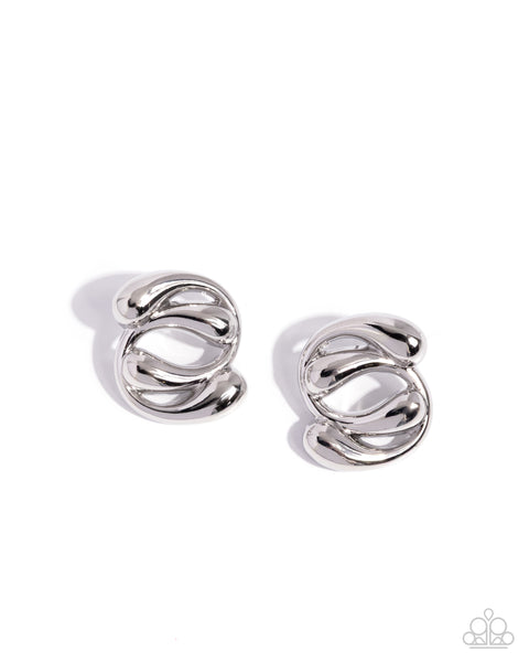 Featuring a high sheen, a duo of glistening silver C-shaped bars intersect and curl atop the ear for an adorably abstract look. Earring attaches to a standard post fitting.
