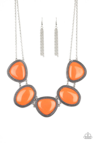 Featuring studded silver frames, a collection of Living Coral beaded frames link below the collar for a colorful statement-making look. Features an adjustable clasp closure.